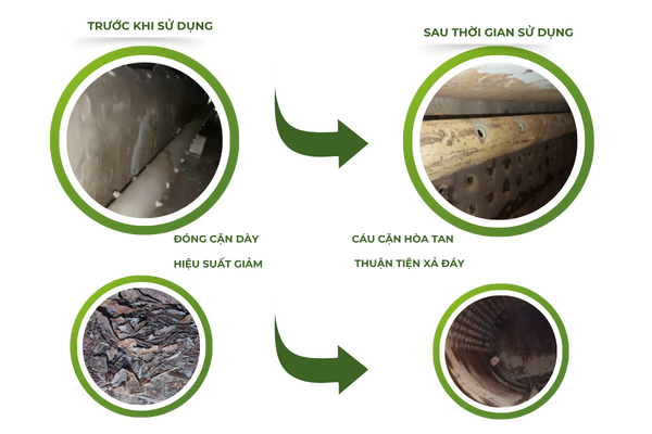 Cáu cặn làm tắc nghẽn đường ống, gây nóng cục bộ và hỏng thiết bị. Bạn phải tốn công và chi phí để xúc rửa, thay thế linh kiện, gây gián đoạn hoạt động sản xuất.